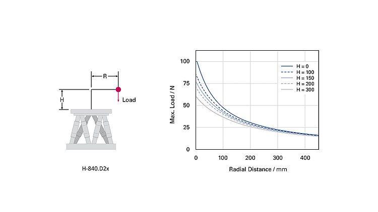 Precision hexapod; brushless DC gear motor; absolute encoder; 30 kg payload; 2.5 mm/s maximum velocity. Connecting cables are not included in the scope of delivery and must be ordered separately.